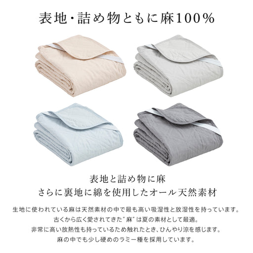 ラミー麻生地&ラミー麻わたを使い、蒸れにくくサラッと快適! 表はラミー麻生地、裏に綿100%生地、詰め物にラミー麻わたを使った天然素材敷パッド。麻は天然素材の中で最も高い吸湿性と放湿性をもっています。また汗っかきの方やサラッとしたものをお探しの方に最適です。汗ばんでも肌に密着しにくくべた...
