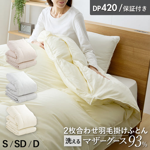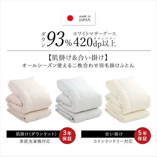 【送料無料】沖縄県全域(離島含む)と北海道(離島除く)も送料無料でお届けいたします。※一部の離島は追加送料700円/件が必要となります。 商品 2枚合わせ 羽毛掛け布団(オールシーズンタイプ) サイズ シングル 150cm(幅)×210cm(長さ) 素材 生...